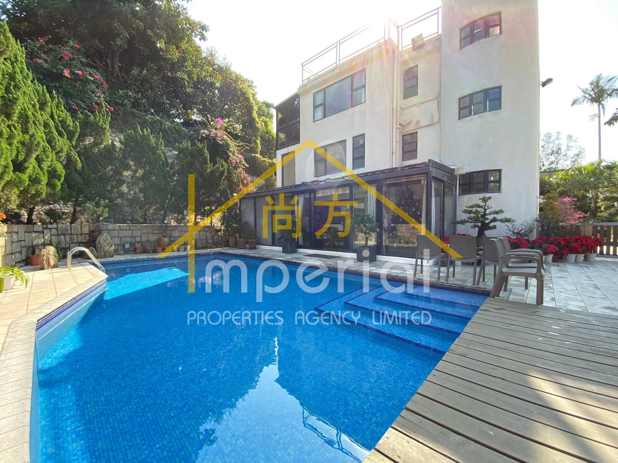 泳池獨立屋【可股權轉讓 】 坐擁環翠群山之美景 盡享高峯幽靜翠綠 山上透天別墅 獨門獨院 鳥語花香來相伴 養尊處優 心靈綠洲 遠離都市塵囂 – 整個山頭你是王 私家車庫存珍藏 碧波暢泳懶洋洋 花園無敵至尊尚 – 錦璀煌庭 鄰近路邊 獨立屋全幢三層 萬呎圍牆花園 私家泳池 私家車房 所有全歸你 車程只八分鐘到西鐵站