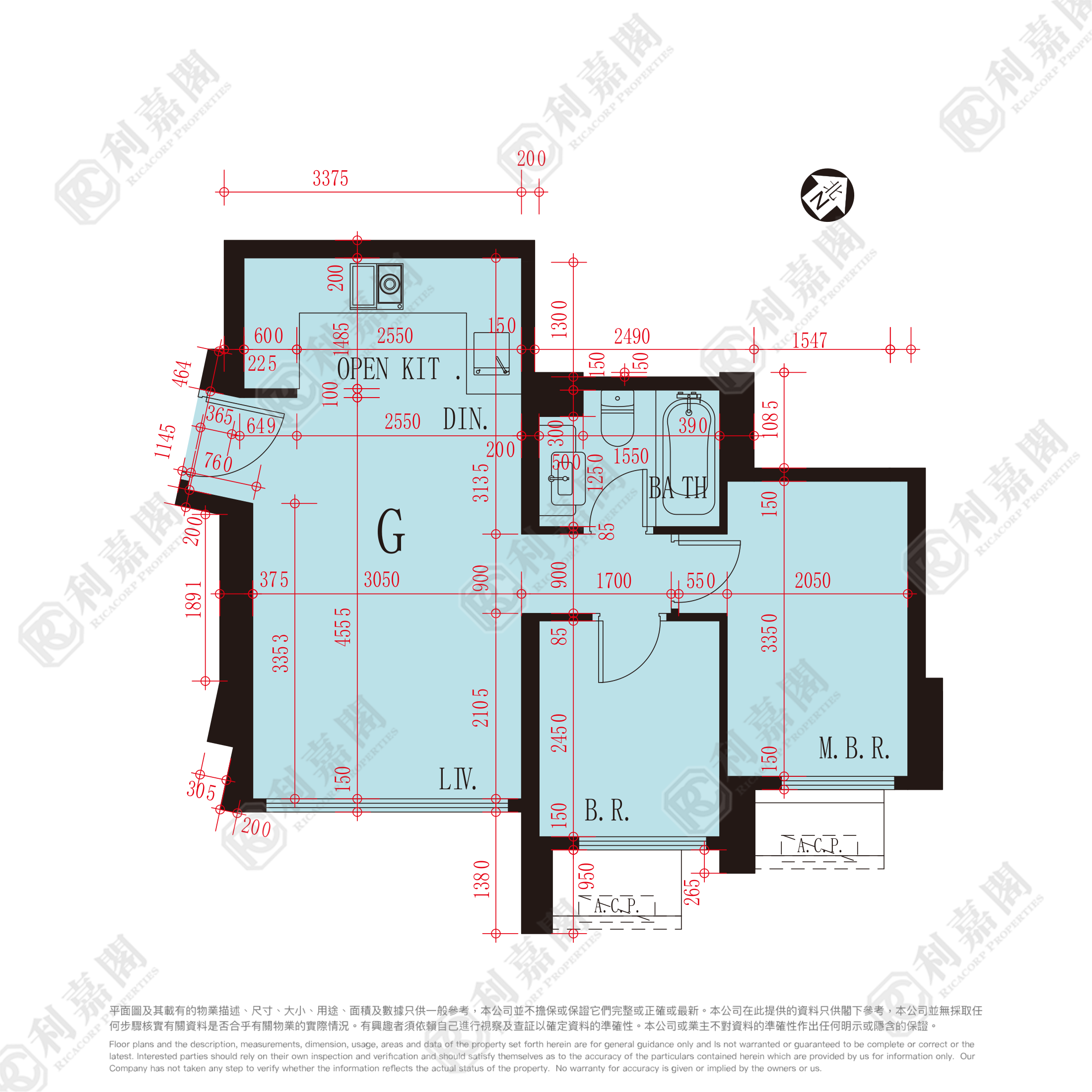 間隔:2房1廳1廁