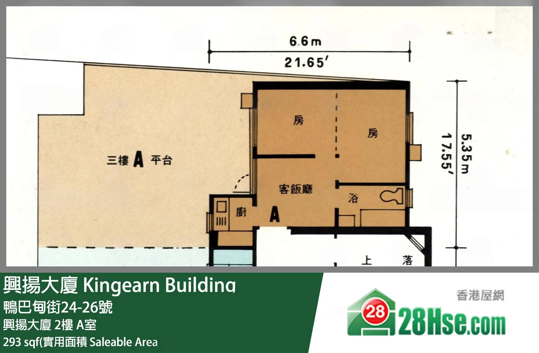 實用面積:293呎,每呎18361.8元